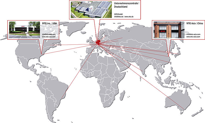 在法国, 印度, 韩国, 俄罗斯和台湾都设有WTO自己的销售点, 由有专业才能的员工与我们所在地的销售伙伴共同为客户提供最佳的咨询及服务.